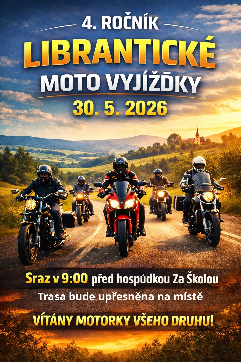 V sobotu 30.5.2026 se uskuteční 4. ročník librantické moto vyjížďky.